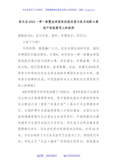 / 校长在2024一带一路暨金砖国家技能发展与技术创新大赛助产技能赛项上的致辞