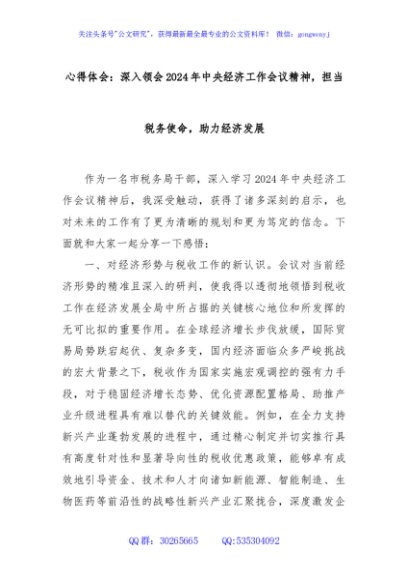 / 心得体会:深入领会2024年中央经济工作会议精神,担当税务使命,助力经济发展