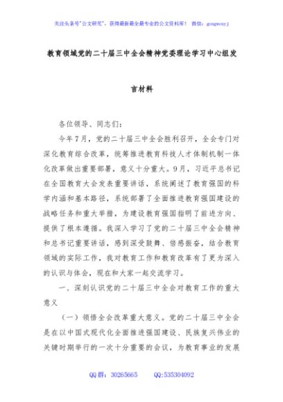 / 教育领域党的二十届三中全会精神党委理论学习中心组发言材料