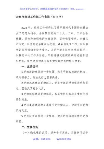 / 2025年党建工作部工作安排要点(1911字)