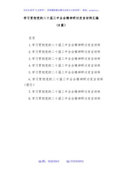 / (8篇)学习贯彻党的二十届三中全会精神研讨发言材料汇编