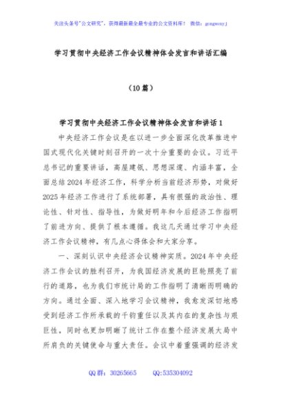(10篇)学习贯彻中央经济工作会议精神体会发言和讲话汇编