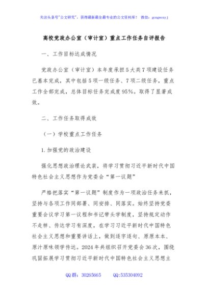 / 高校党政办公室(审计室)重点工作任务自评报告