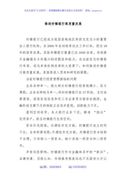 推进村镇银行高质量发展