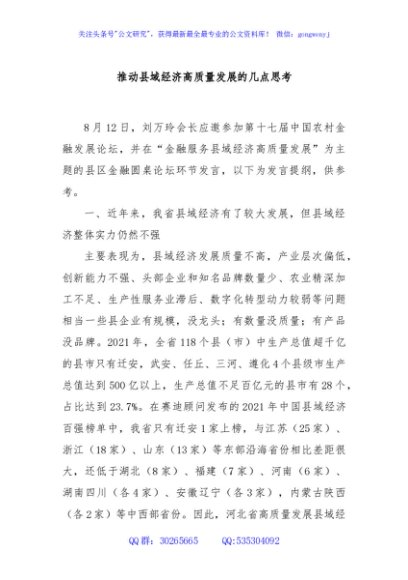 / 推动县域经济高质量发展的几点思考