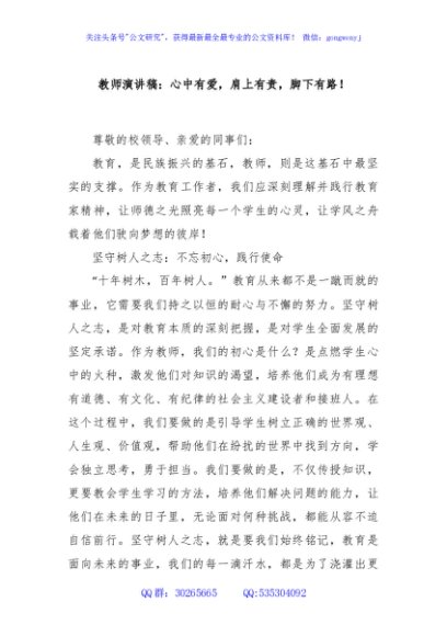 / 教师演讲稿:心中有爱,肩上有责,脚下有路!