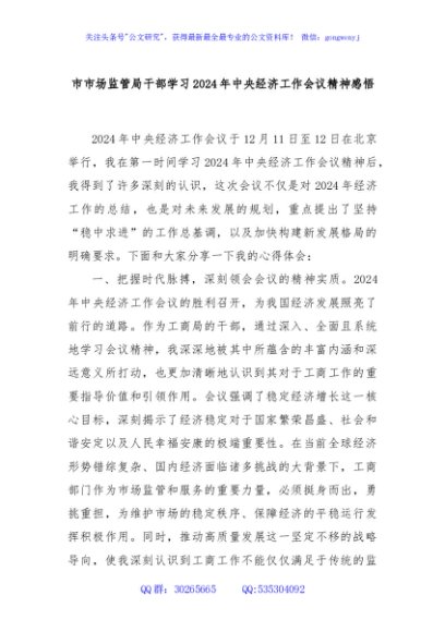 / 市市场监管局干部学习2024年中央经济工作会议精神感悟