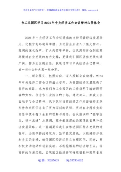 / 市工业园区学习2024年中央经济工作会议精神心得体会