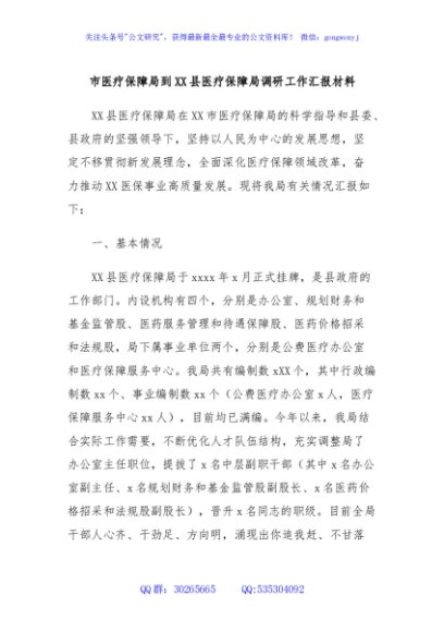/ 市医疗保障局到XX县医疗保障局调研工作汇报材料