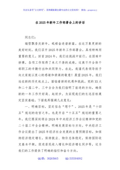 / 在2025年新年工作部署会上的讲话