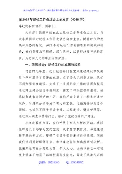 / 在2025年纪检工作务虚会上的发言(4028字)