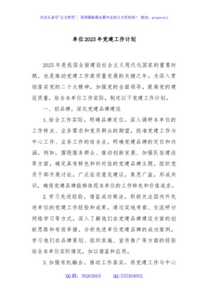 / 单位2025年党建工作计划