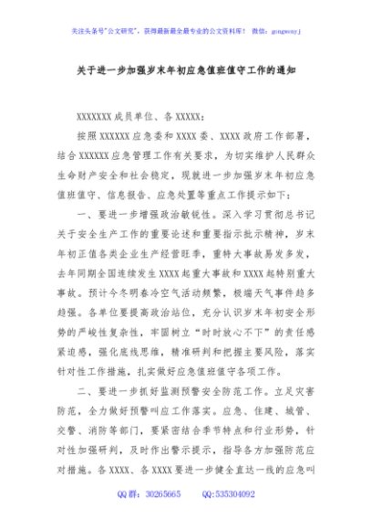/ 关于进一步加强岁末年初应急值班值守工作的通知