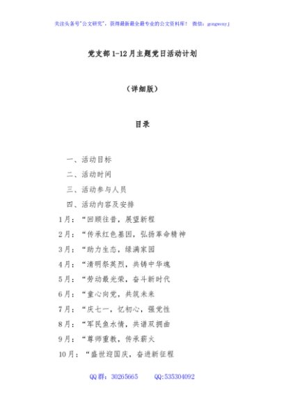 / 党支部 1-12 月 主题党日活动计划(详细版)