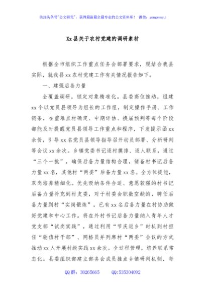 / Xx县关于农村党建的调研素材