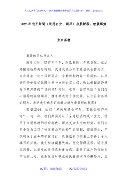 / 2025年元旦贺词(适用企业、领导)启航新程,绘就辉煌未来画卷