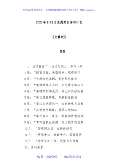 2025 年 1-12 月 主题党日活动计划方案(详细版)