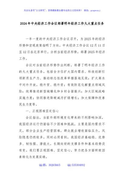 / 2024年中央经济工作会议部署明年经济工作九大重点任务