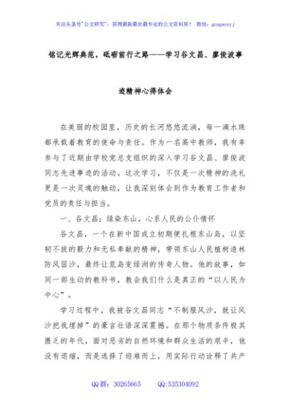 / 铭记光辉典范,砥砺前行之路——学习谷文昌、廖俊波事迹精神心得体会
