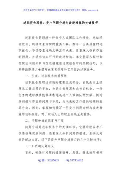 / 述职报告写作:突出问题分析与改进措施的关键技巧