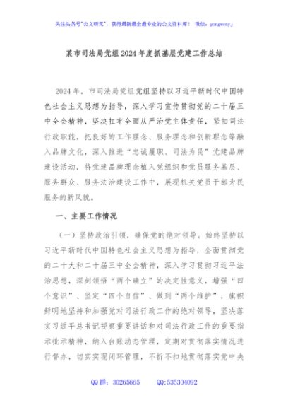 / 某市司法局党组2024年度抓基层党建工作总结