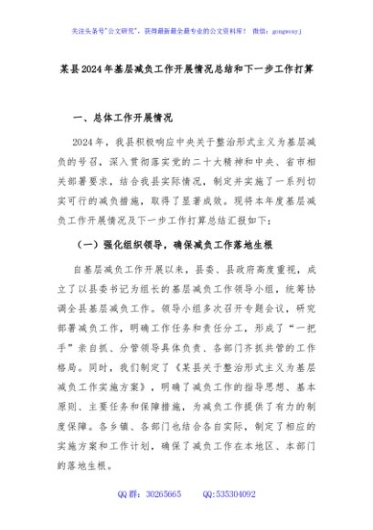 / 某县2024年基层减负工作开展情况总结和下一步工作打算