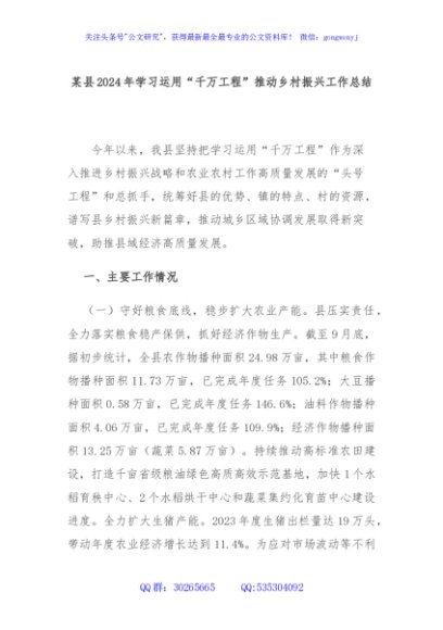 / 某县2024年学习运用“千万工程”推动乡村振兴工作总结