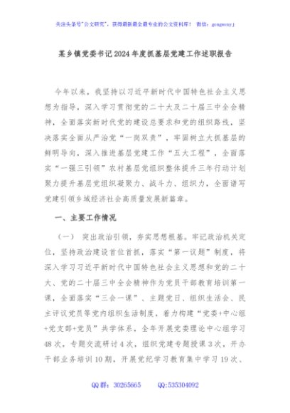 / 某乡镇党委书记2024年度抓基层党建工作述职报告