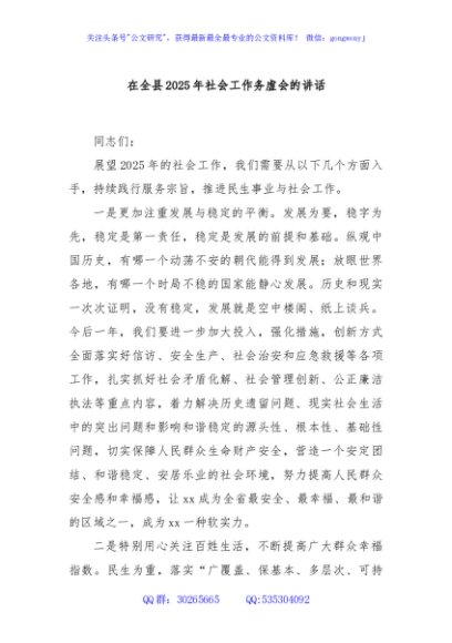 / 在全县2025年社会工作务虚会的讲话