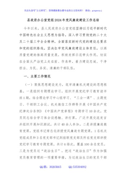 / 县政府办公室党组2024年党风廉政建设工作总结