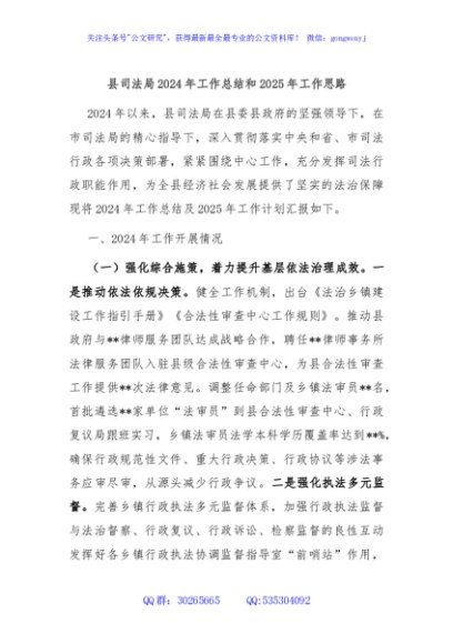 / 县司法局2024年工作总结和2025年工作思路