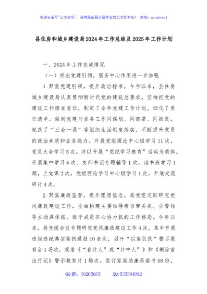 / 县住房和城乡建设局2024年工作总结及2025年工作计划