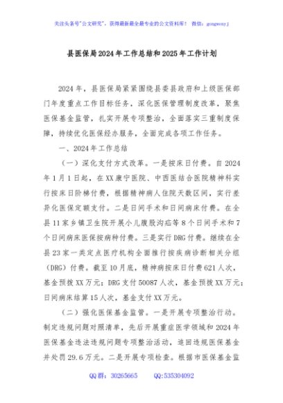 / 县医保局2024年工作总结和2025年工作计划