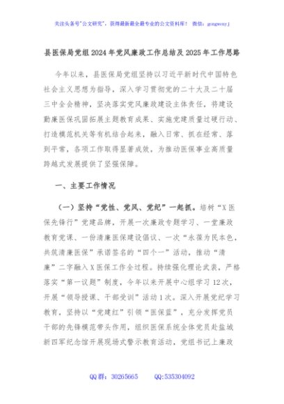 / 县医保局党组2024年党风廉政工作总结及2025年工作思路
