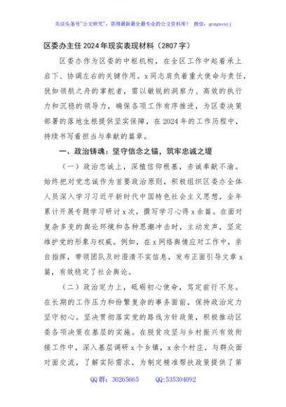 / 区委办主任2024年现实表现材料(2807字)