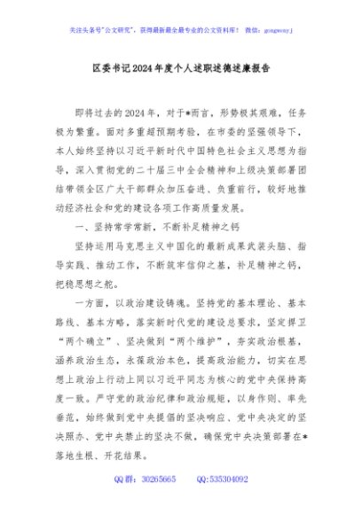 / 区委书记2024年度个人述职述德述廉报告
