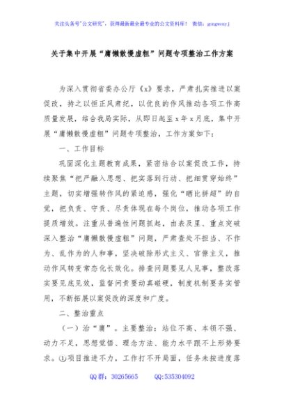 / 关于集中开展“庸懒散慢虚粗”问题专项整治工作方案