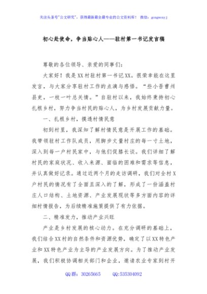 / 初心赴使命,争当贴心人——驻村第一书记发言稿