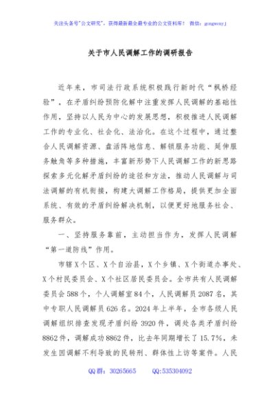 / 关于市人民调解工作的调研报告