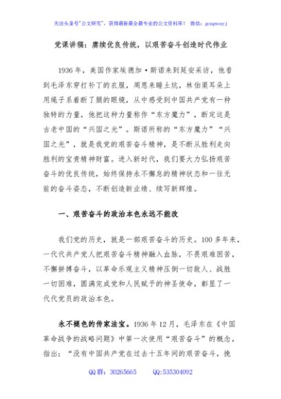 / 党课讲稿:赓续优良传统,以艰苦奋斗创造时代伟业