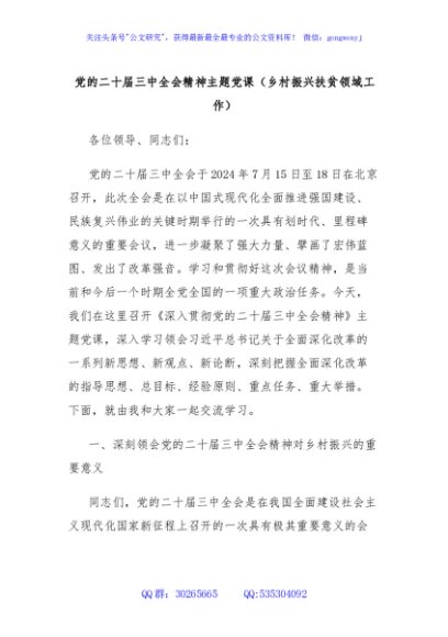 / 党的二十届三中全会精神主题党课(乡村振兴扶贫领域工作)