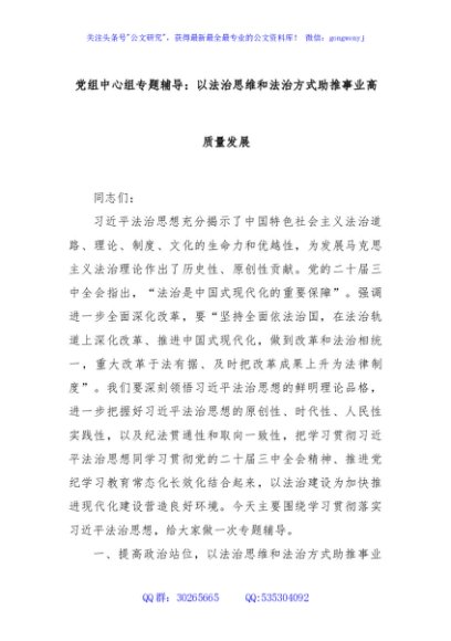 / 党组中心组专题辅导:以法治思维和法治方式助推事业高质量发展
