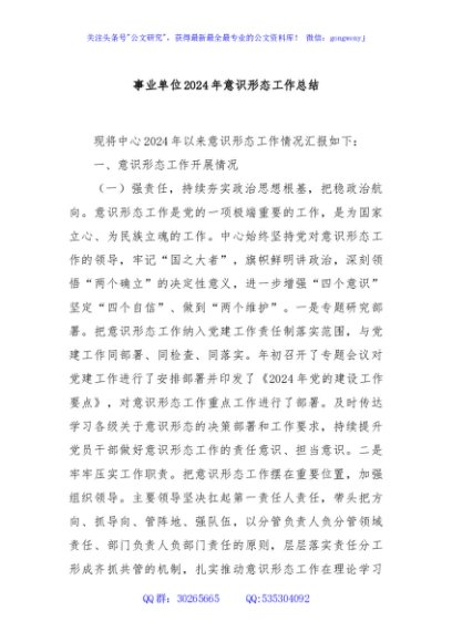 / 事业单位2024年意识形态工作总结