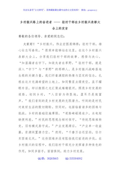 / 乡村振兴路上的奋进者 —— 驻村干部在乡村振兴表彰大会上的发言