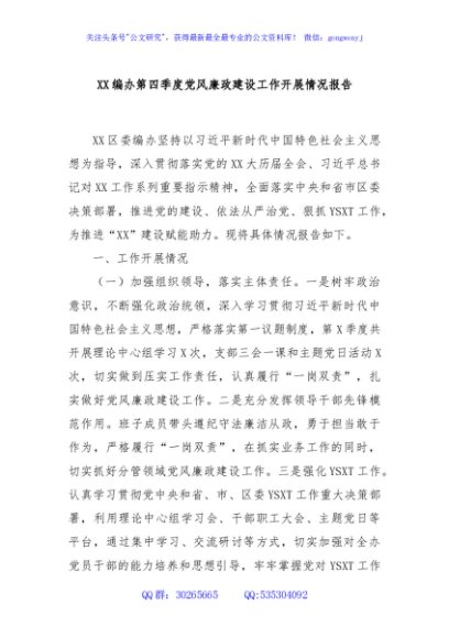 / XX编办第四季度党风廉政建设工作开展情况报告