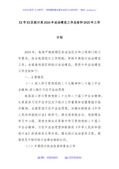/ XX市XX区统计局2024年法治建设工作总结和2025年工作计划
