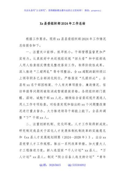 / Xx县委组织部2024年工作总结