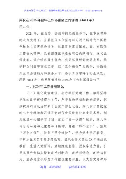 / 局长在2025年新年工作部署会上的讲话(4441字)