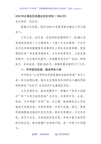 / 2025年乡镇在区务虚会发言材料(1806字)