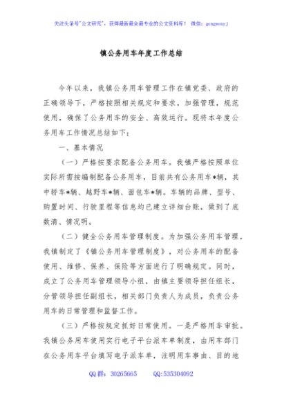 / 镇公务用车年度工作总结